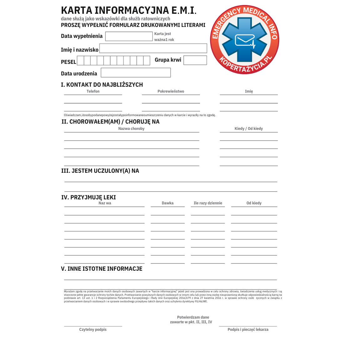 Znajdź czas i poświęć możliwie dużo uwagi, by prawidłowo wypełnić kartę informacyjną, wkładaną do koperty. Pamiętaj, od tego może zależeć Twoje życie!