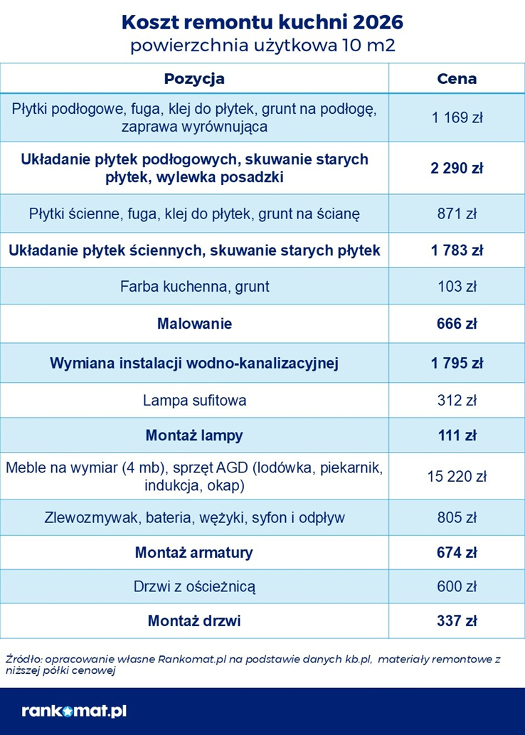 - Najdroższy jest remont kuchni
